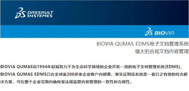 BIOVIA QUMAS EDMS电子文档管理系统 博客由 bestway2021年9月17日BIOVIA QUMAS EDMS电子文档管理系统强大的合规文档内容管理 BIOVIA QUMAS自199…